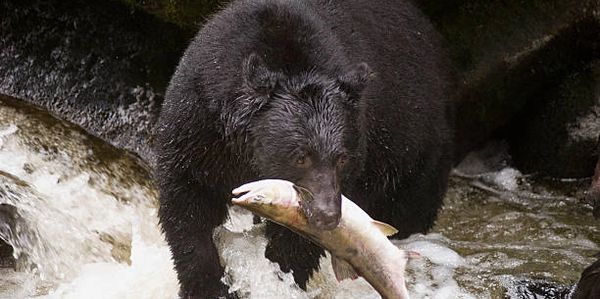 Then, step ashore — onto a remote island where the forest hums with the sound of rushing streams and the scent of cedar fills the air. Here, along salmon-rich creeks, black bears emerge from the trees, powerful and graceful, fishing in the shallows just yards away.